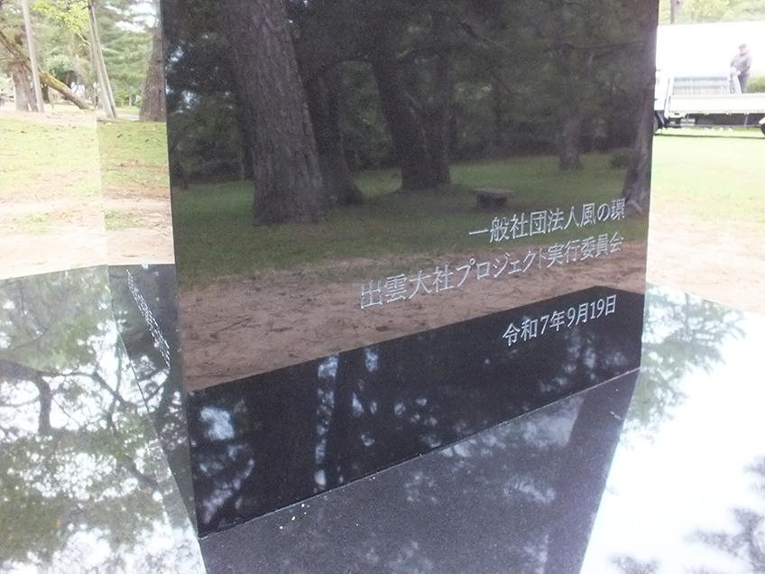 - 出雲大社式典 - 2025.09.19 PM 16:00/ 奉告祭及び除幕式/出雲大社 PM 19:30/レセプション/ホテル一畑 共催:出雲大社プロジェクト実行委員会、一般社団法人風の環/後援:津山市