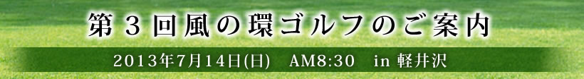 昨年は諸般の事情でお休みした 風の環ゴルフ を下記の通り軽井沢で開催す ることとなりました。ぜひとも多数の方々のご参加賜りたくご案内申し上げます。