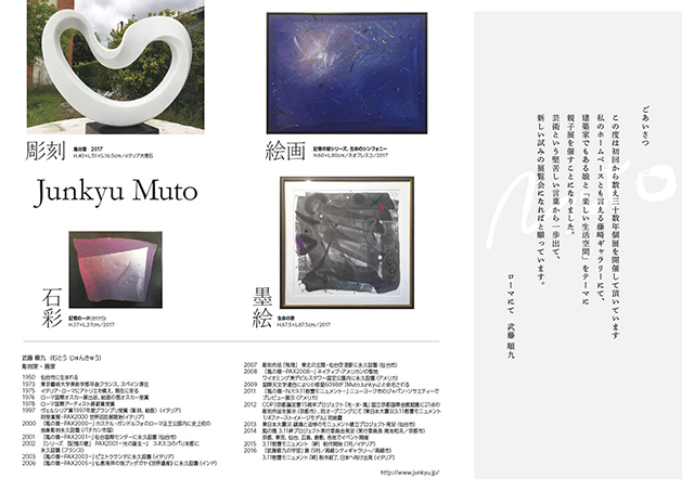 この度は初回から数え三十数年個展を開催し、私のホームベースとも言える藤崎美術ギャラリーにて、 建築家でもある娘と「楽しい生活空間」をテーマに 親子展を催すことになりました。 芸術という堅苦しい言葉から一歩出て、新しい試みの展覧会になればと願っています。