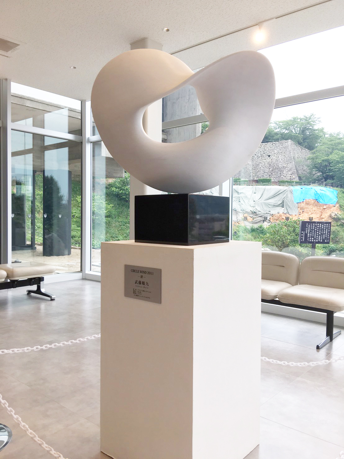 大理石彫刻作品である3.11慰霊モニュメント「CIRCLE WIND 2011 -絆-」1/4モデルを中心に、