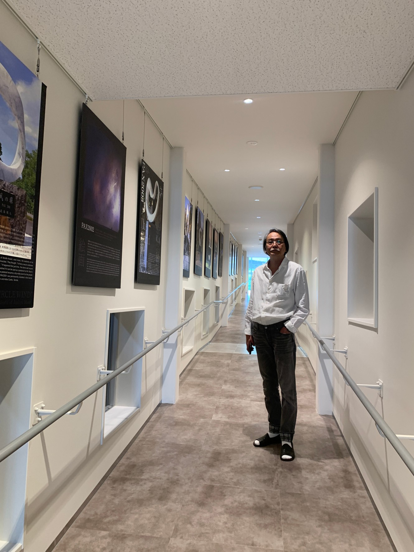 屋内スロープには、武藤順九作品の世界観とこれまでのプロジェクトを俯瞰できるパネル群が展示されています。